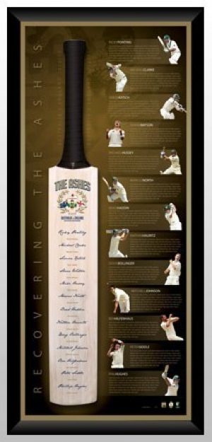 Cricket – Ashes 2 Ashes Signed and Framed Cricket Bat
