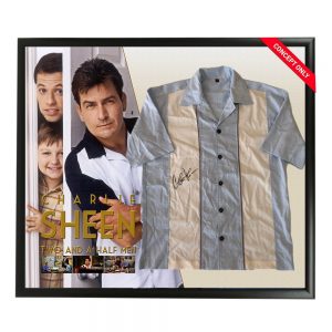 Charlie Sheen Signed & Framed Green Bowling Shirt