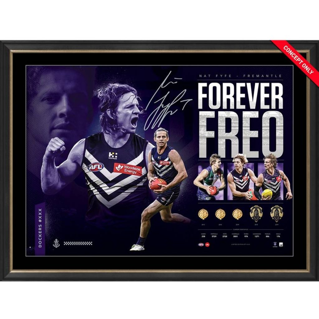 As the sun sets on Nat Fyfe’s glittering career, we pay tribute to one of the most uniquely dominant and captivating players of the modern era. Don’t miss your chance to celebrate one of the most dynamic, courageous and inspiring players ever to pull on the Dockers jumper — without question, one of Fremantle’s finest.