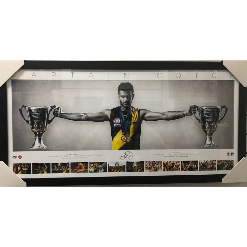 - Features Cotchin in iconic landscape pose also featuring 12 premiership images from the 2017 & 2019 AFL Grand Final.