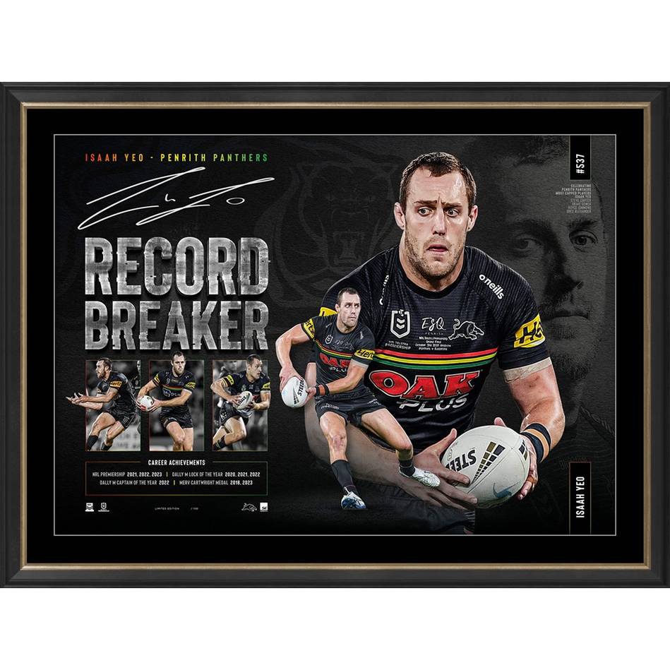 A four-time Premiership captain. A dual – and reigning – Merv Cartwright Medallist. A Blues and Kangaroos representative and now… Isaah Yeo is the most capped Panther in history. We pay tribute to Isaah’s record-breaking achievement, a special moment that is truly the culmination of 11 seasons of grit, courage, skill and leadership. Personally signed, officially licensed and strictly limited, don’t miss out on securing your piece of Panthers history.