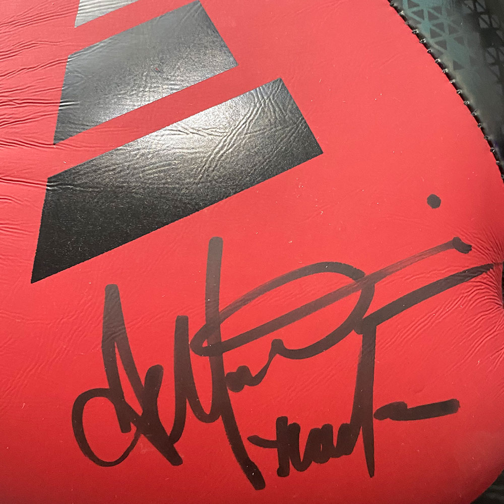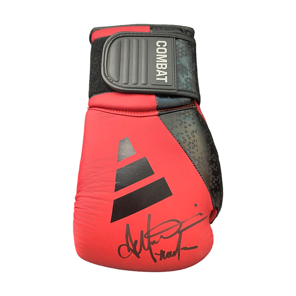 • Red Adidas Boxing Glove hand signed by Anthony Mundine for Taylormade Memorabilia at the 2025 “Fight Cancer Charity Boxing Match”