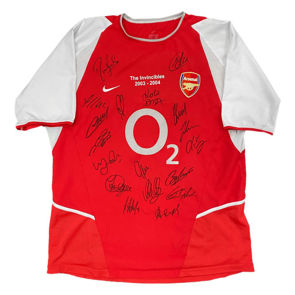 • Arsenal ‘The Invincibles’ 2003 – 2004 Jersey hand signed by 18 Arsenal Stars