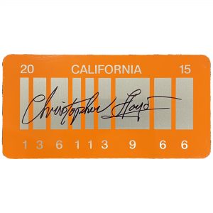 - BTTF 2 replica metal “Barcode License Plate” hand signed by Christopher Lloyd (Taylormade Private Signing)