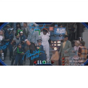 - 20×10 photograph from the scene where Griff’s Gang is captured hand signed by Thomas F. Wilson (“GRIFF”), Ricky Dean Logan (“DATA”) & Darlene Vogel (“SPIKE”) (ACOA COA)