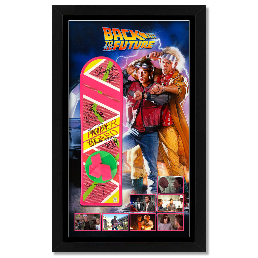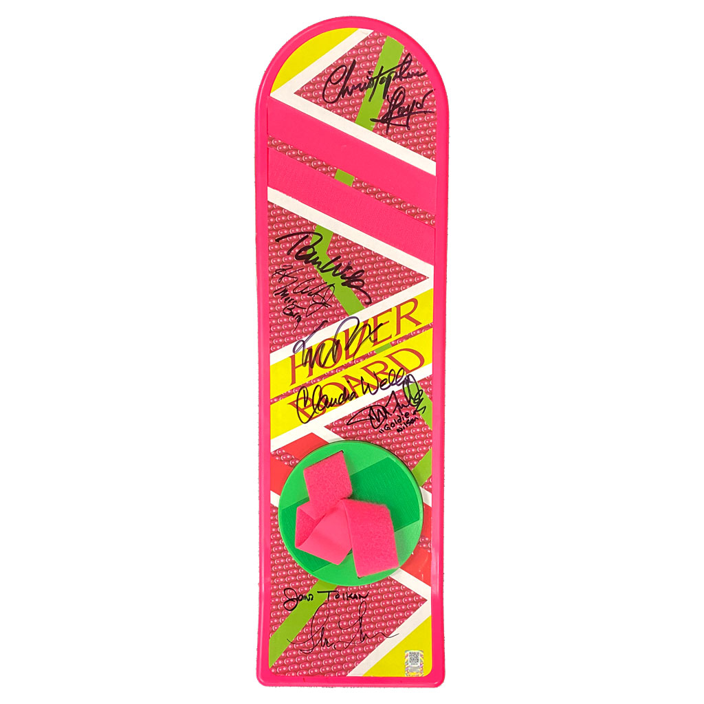 • Full Size 1:1 Scale replica Hoverboard hand signed by Michael J Fox (Marty McFly), Christopher Lloyd (Doc Brown), Thomas Wilson (Biff Tannen), Lea Thompson (Lorraine Baines) James Tolkan (Strickland), Donald Fullilove (Goldie Wilson) and Harry Waters Jr. (Marvin Berry)