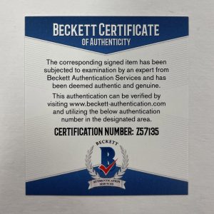 - Accompanied by an individually numbered Certificate of Authenticity with matching tamper-evident holograms as well as a third party Beckett Certificate of Authenticity
