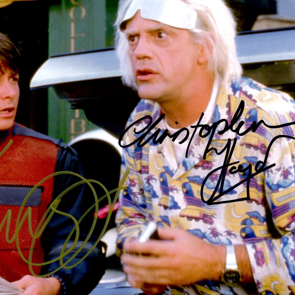 - High quality 8×10 photograph hand signed by Michael J. Fox (Marty McFly) & Christopher Lloyd (Doc Brown)