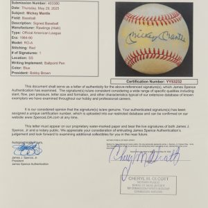• Rawlings Official American League baseball has been hand-signed by Mickey Mantle (D. 1995, New York Yankees, HOF)
