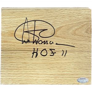 • Approximately 5″ x 6″ Wood Floorboard Piece hand signed & inscribed “HOF 11” by Artis Gilmore (Chicago Bulls)