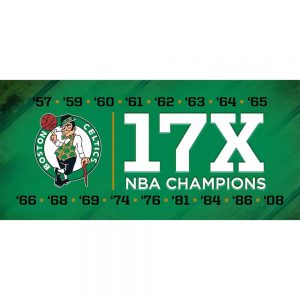 - This polyester resin replica trophy measures 12 inches tall and comes with a sublimated plate attached to the base commemorating the 17-Time NBA Champions Boston Celtics.