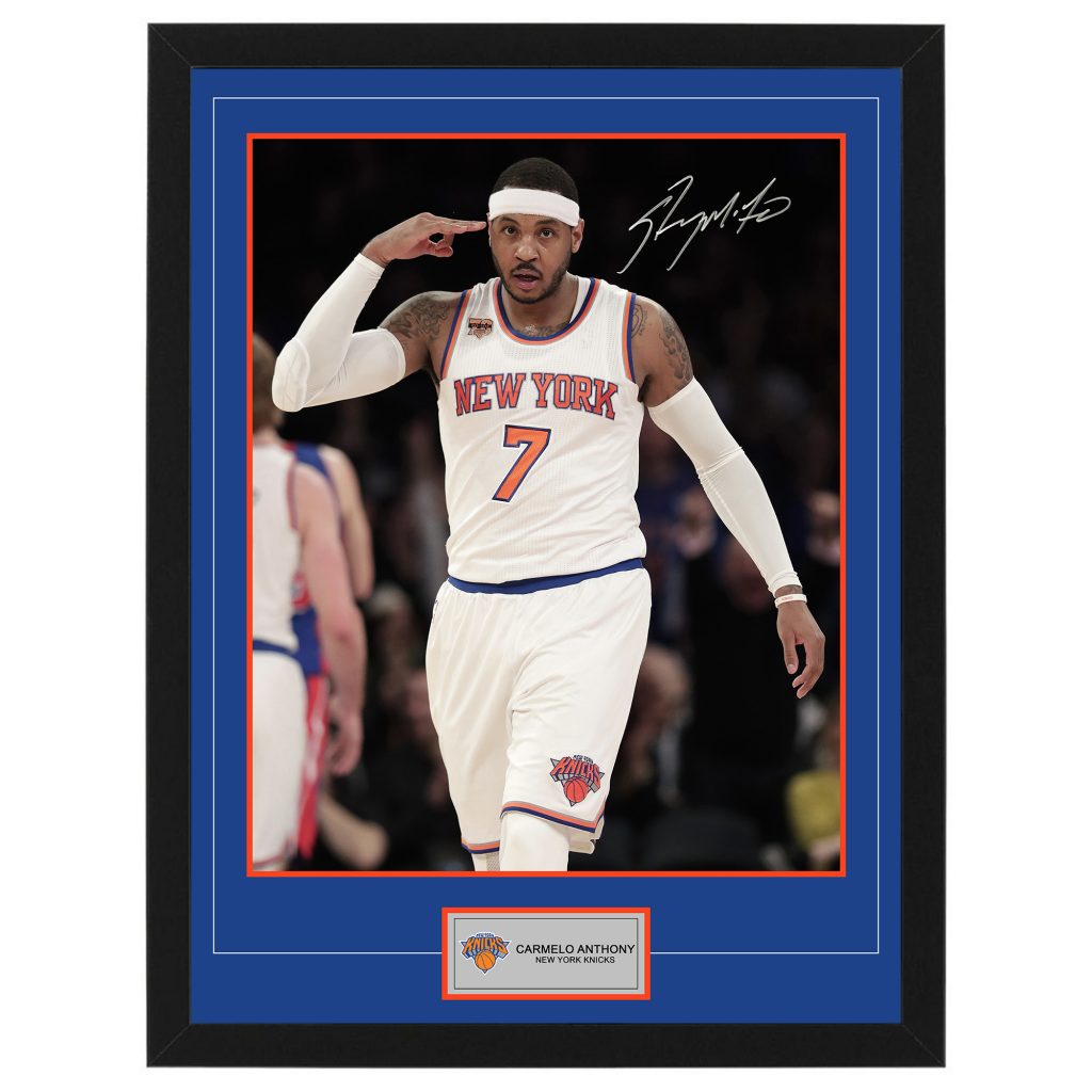 - High quality 16″ x 20″ photograph hand signed by Carmelo Anthony (New York Knicks, Denver Nuggets, Los Angeles Lakers, Portland Trail Blazers)