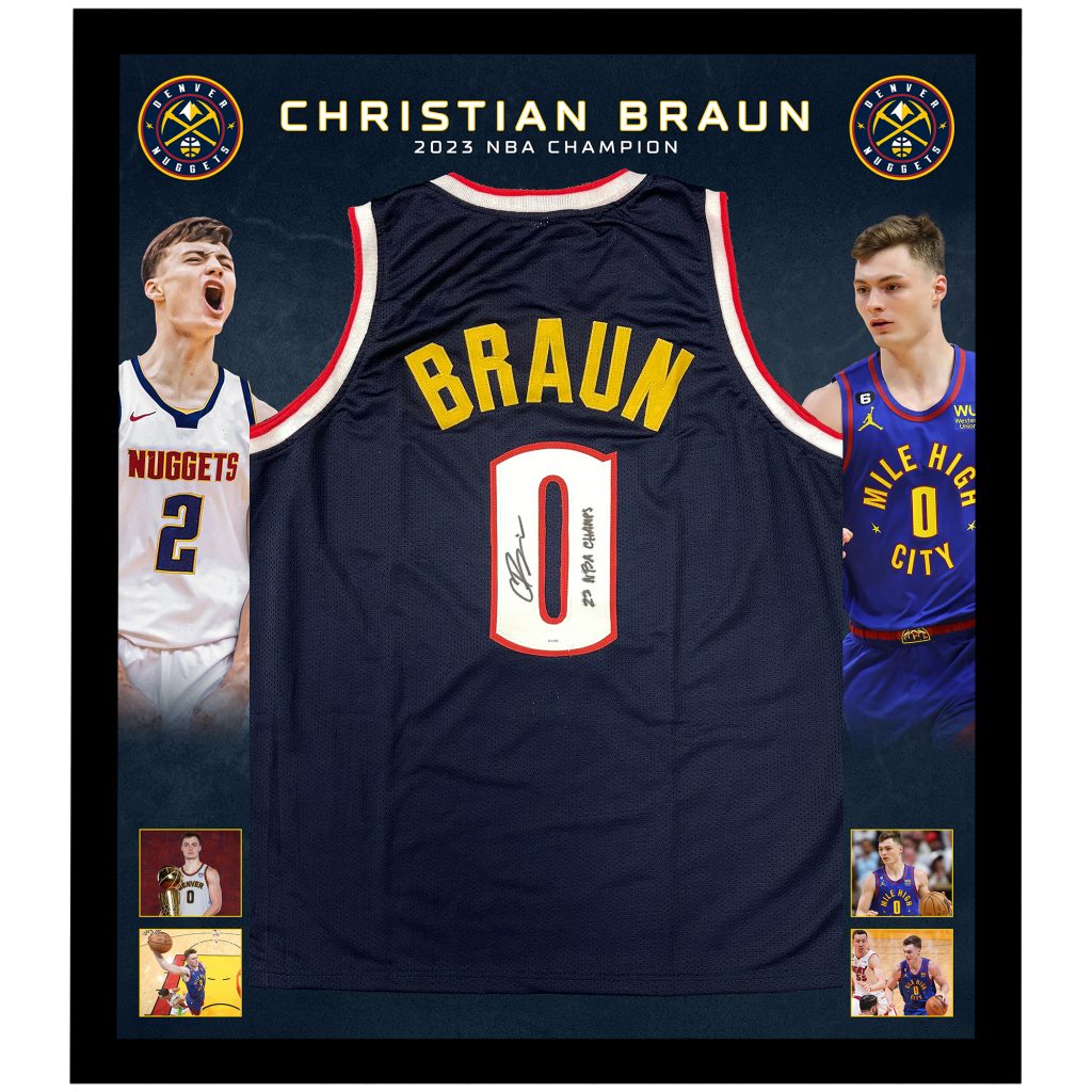 - Denver Nuggets custom basketball jersey hand signed & inscribed “23 NBA CHAMPS” by Christian Braun