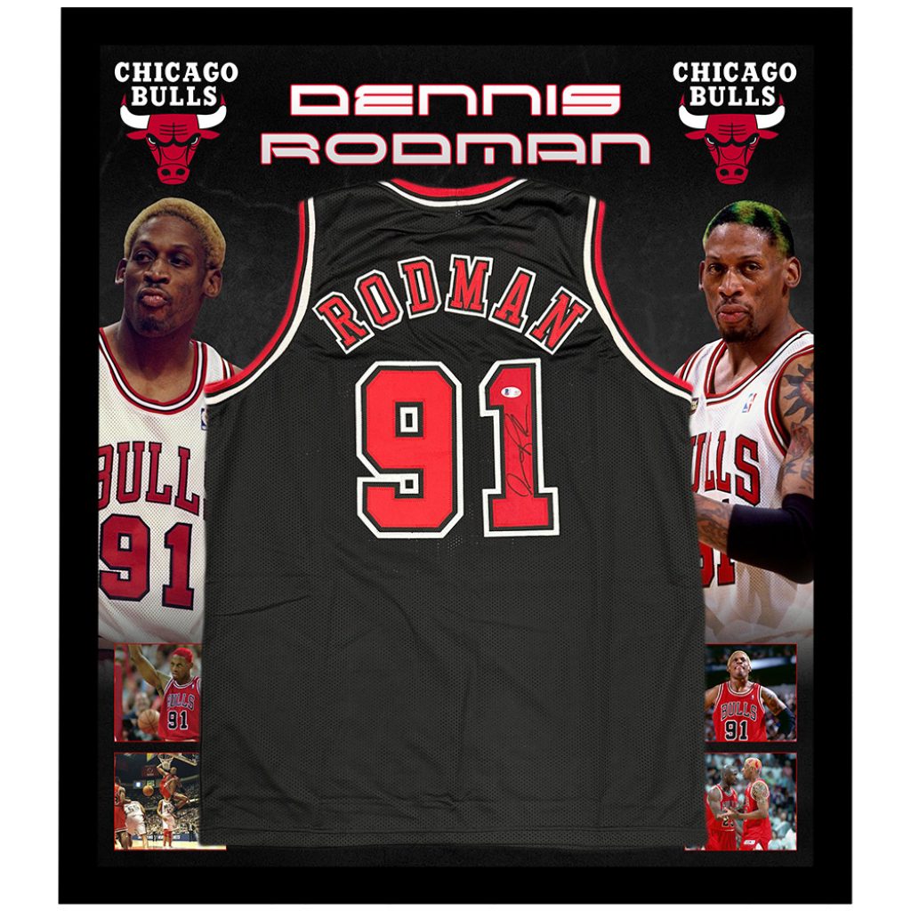Basketball – Dennis Rodman Signed & Framed Black Chicago Bulls Jersey (Beckett COA)