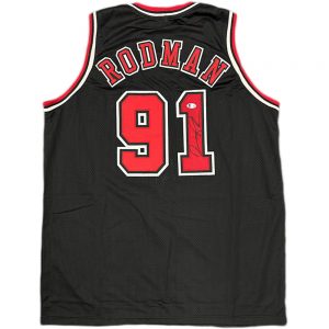 - Chicago Bulls black jersey hand signed by Dennis Rodman