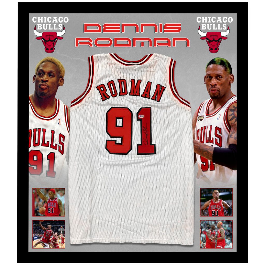 Basketball – Dennis Rodman Signed & Framed White Chicago Bulls Jersey (Beckett COA)