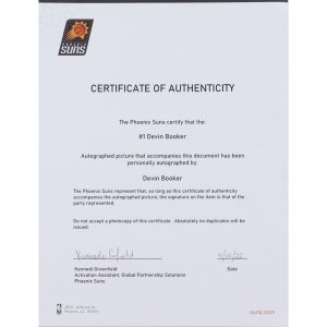 - Accompanied by a third party JSA Certificate of Authenticity with matching hologram & Phoenix Suns Certificate of Authenticity