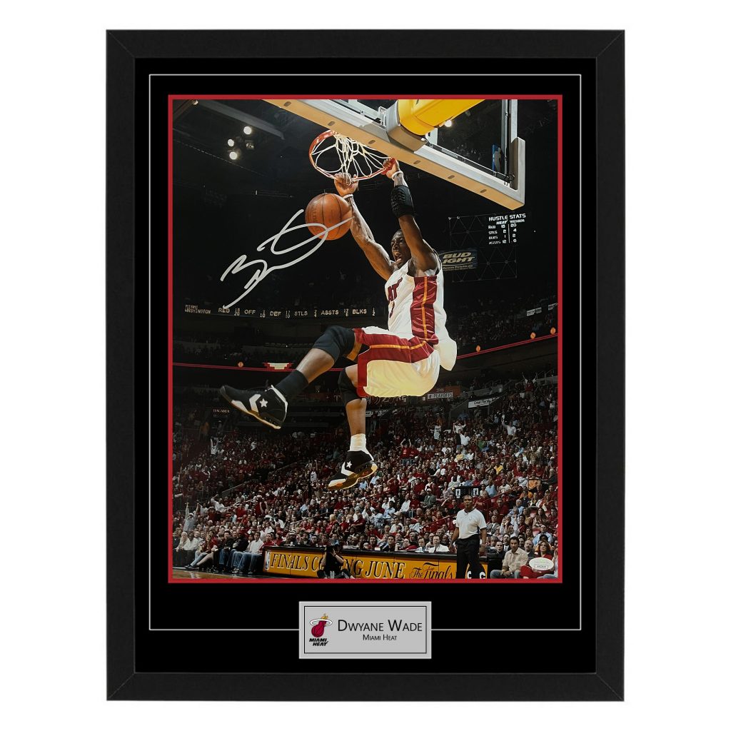 - Signed 16×20 Photograph, personally signed by Dwyane Wade, mounted into a deluxe display