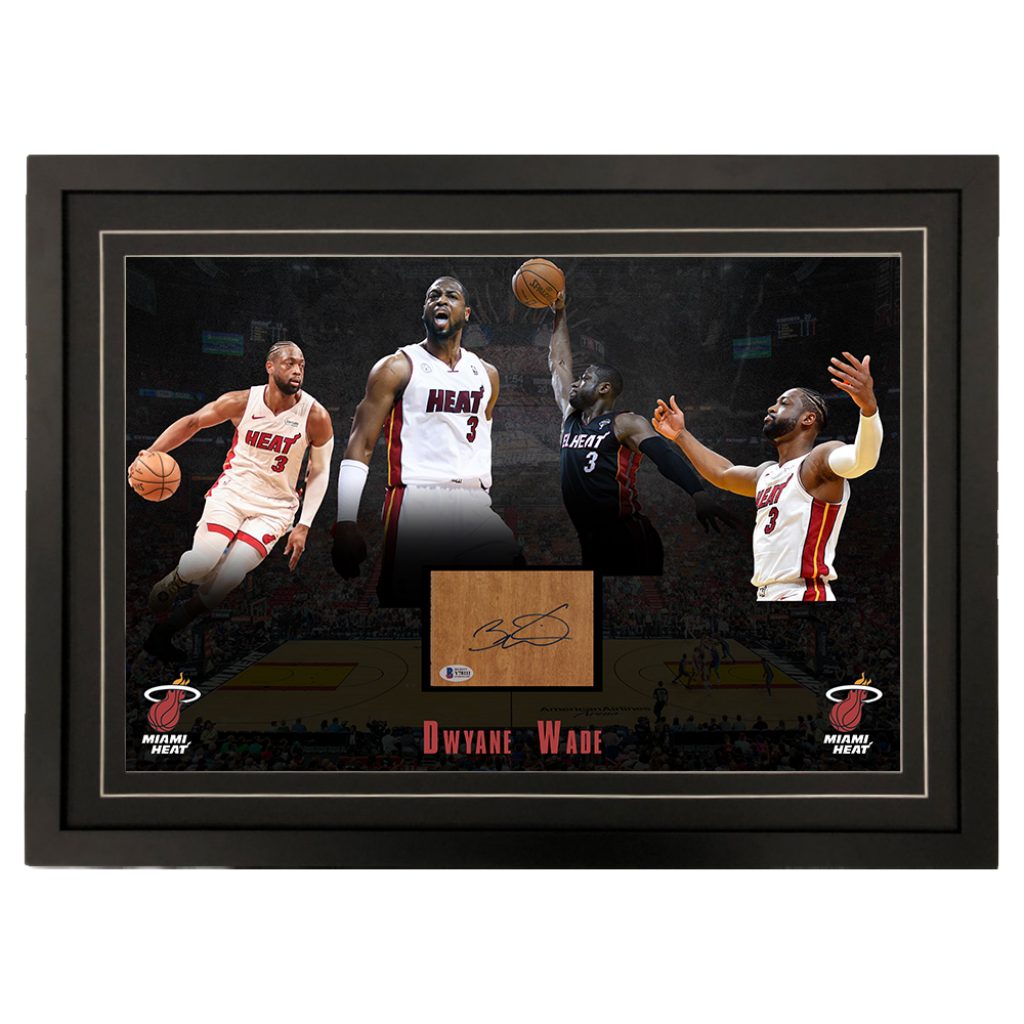 Basketball – Dwyane Wade Hand Signed Wood Floorboard Piece Display (Beckett COA)