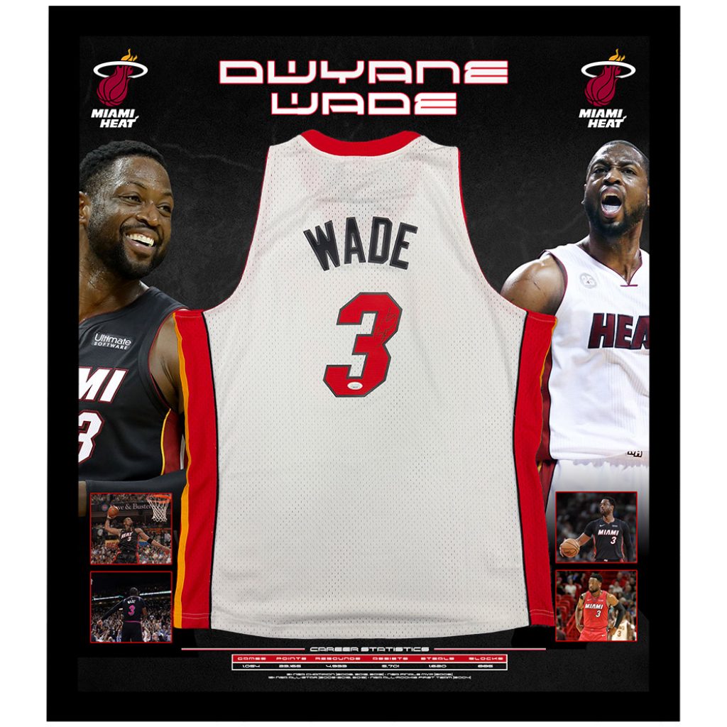 Basketball – Dwyane Wade Signed & Framed Miami Heat White Jersey