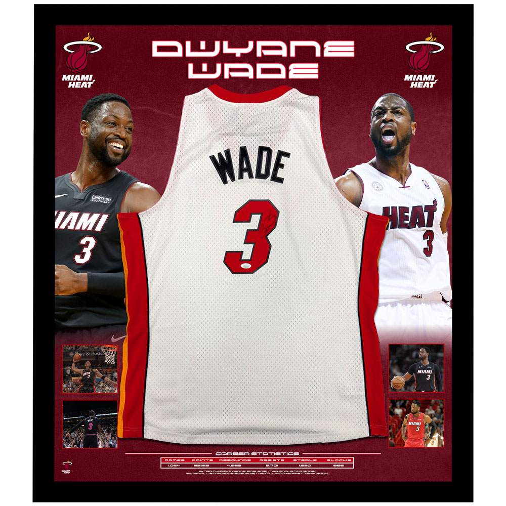 Basketball – Dwyane Wade Signed & Framed Miami Heat White Jersey
