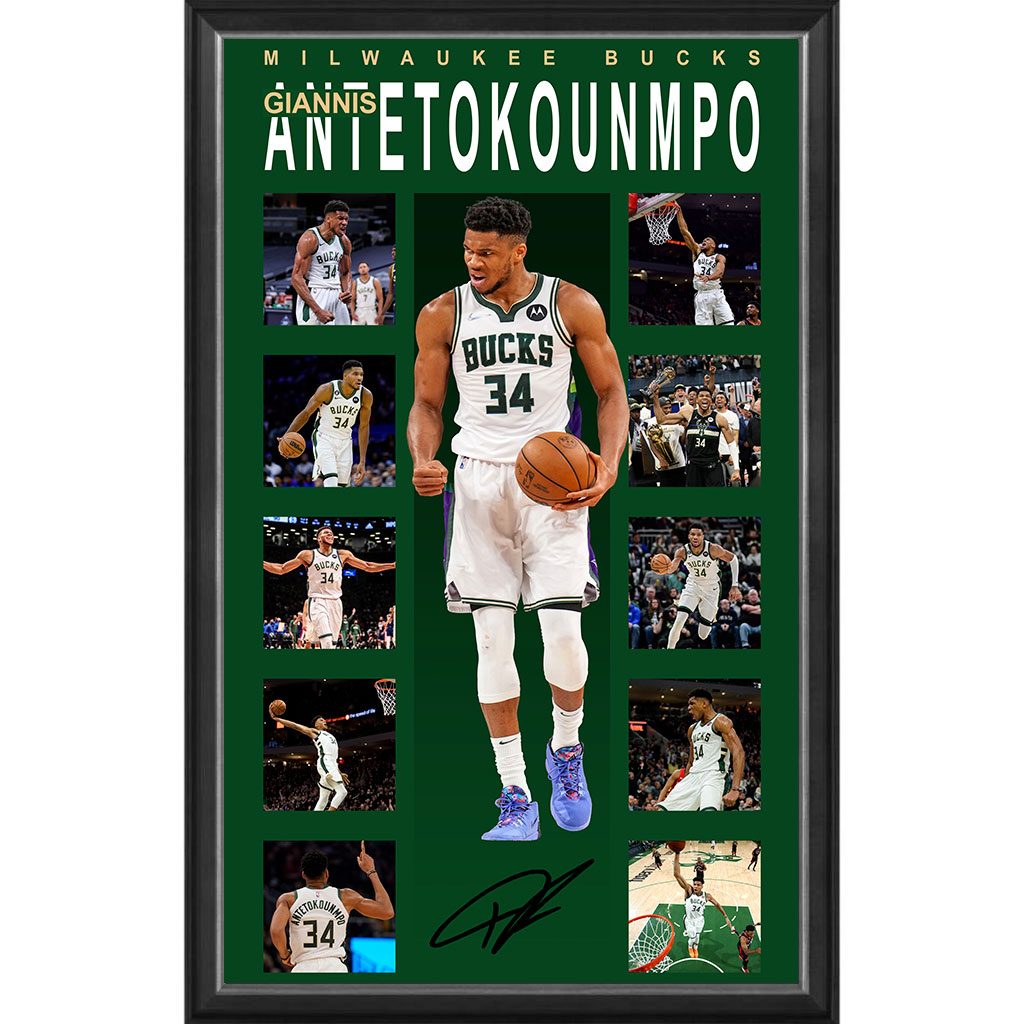 - Features images of Giannis Antetokounmpo along with a facsimile signature