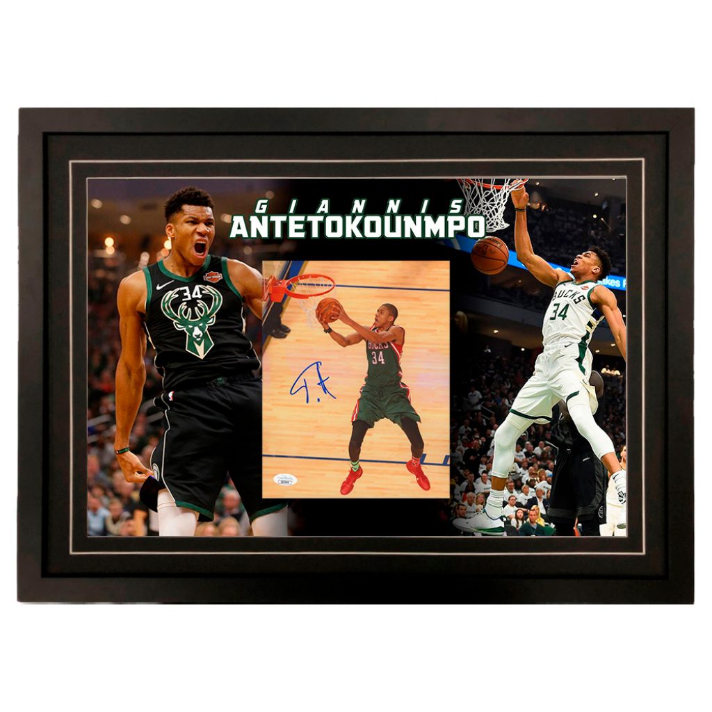 Giannis Antetokounmpo Signed & Framed 11×14 Photo Milwaukee Bucks (JSA COA)