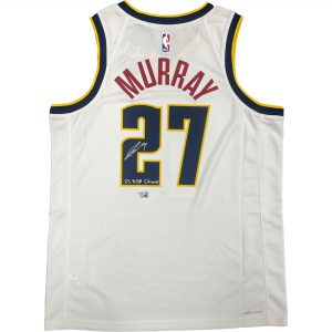- White Denver Nuggets Nike Swingman Jersey hand signed & inscribed “23 NBA CHAMP” by Jamal Murray (Denver Nuggets – 2023 NBA Champion)