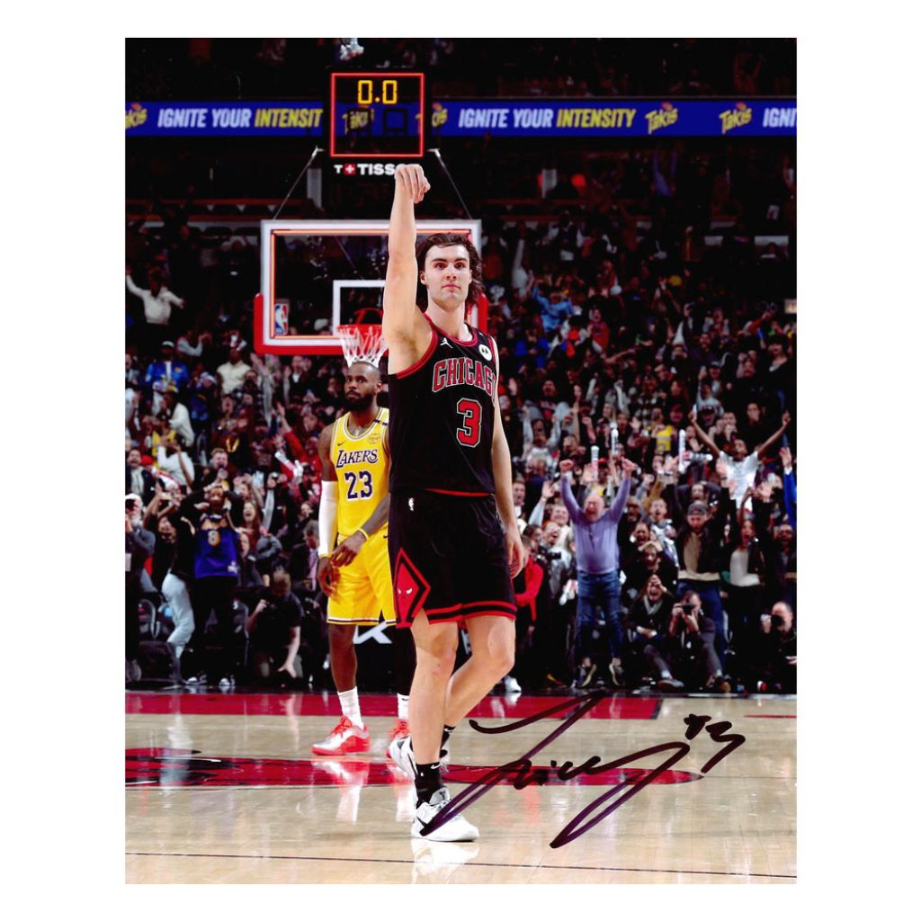 • High quality 8×10 photo of Josh Giddey scoring his half court buzzer against the Lakers, featuring Josh Giddey’s hand signed signature accompanied by photos from the game