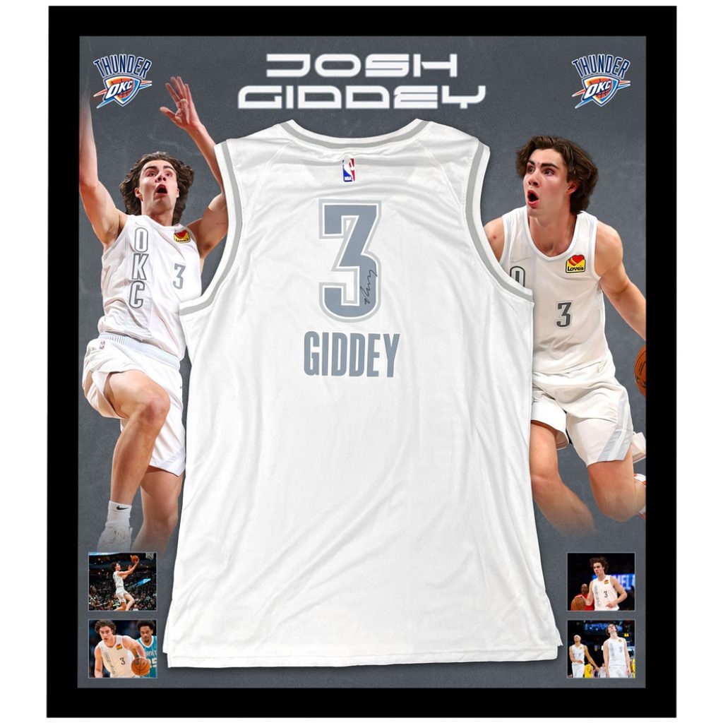 - Oklahoma City Thunder white jersey hand signed by Josh Giddey