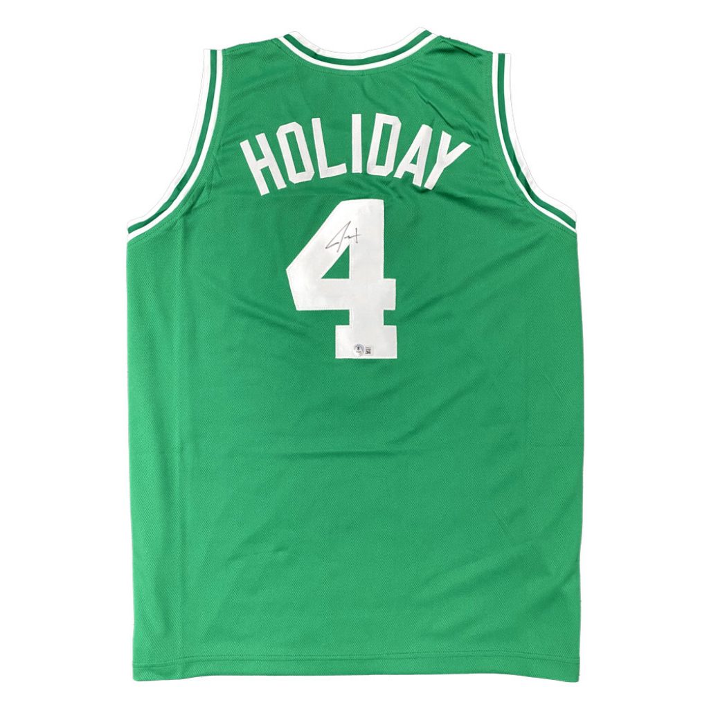 - Green Boston Celtics jersey hand signed by Jrue Holiday