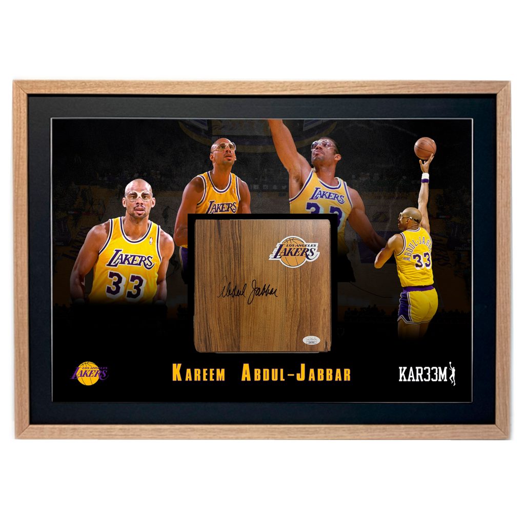 - Approximately 8″ x 7.5″ Wooden Floorboard Piece hand signed by Kareem Abdul-Jabbar