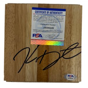 - Approximately 6″ x 6″ Wood Floorboard Piece hand signed by Kevin Durant (Phoenix Suns)