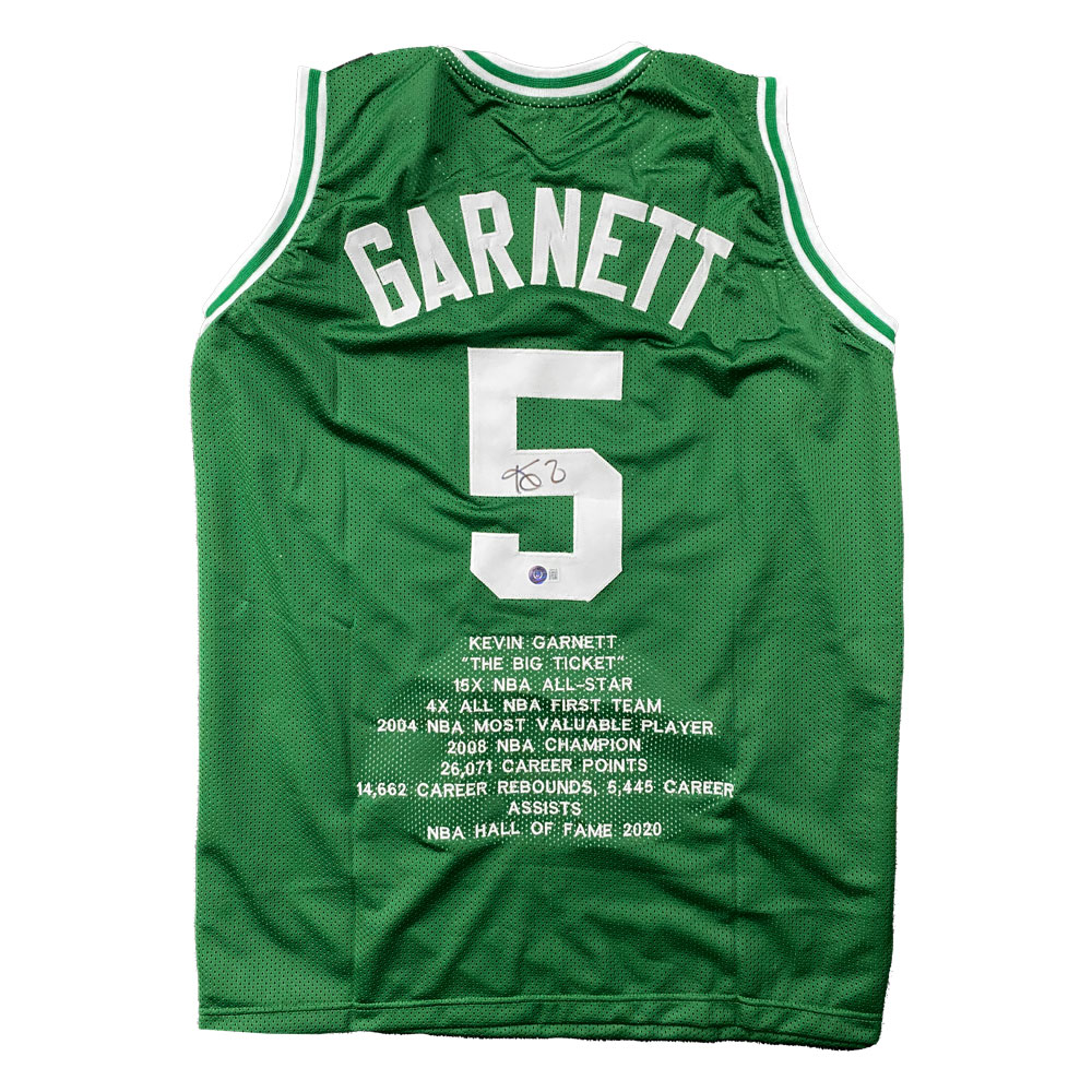 • Custom Boston Celtics green jersey hand signed by Kevin Garnett