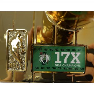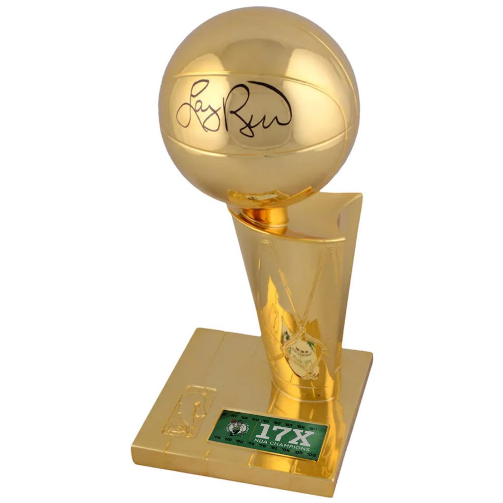- Replica 12″ Larry O’Brien Trophy with 17x champs plaque hand signed by Larry Bird