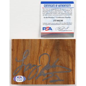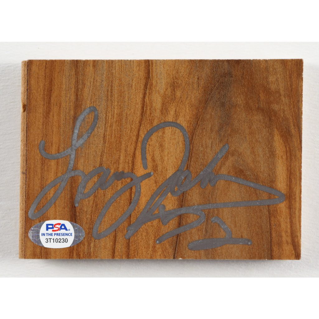 • Approximately 5″x3.5″ Wood Floorboard Piece hand signed by Larry Johnson