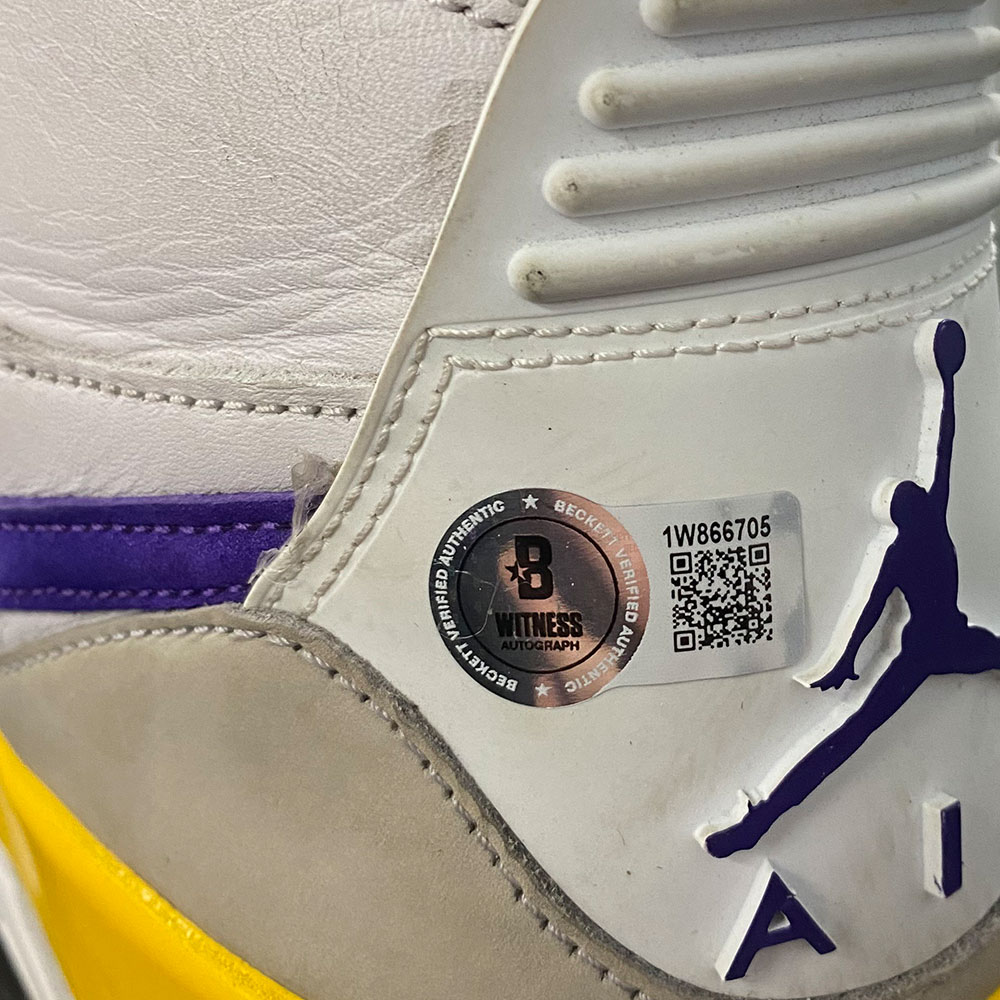 - Nike Air Jordan basketball shoe hand signed by Lakers superstar Magic Johnson