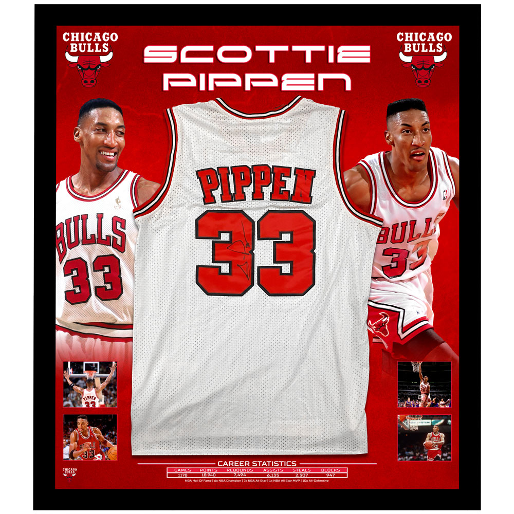 Basketball – Scottie Pippen Signed Framed Chicago Bulls White Jersey