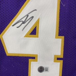 • Los Angeles Lakers jersey hand signed by Shaquille “Shaq” ONeal with embroidered player stats