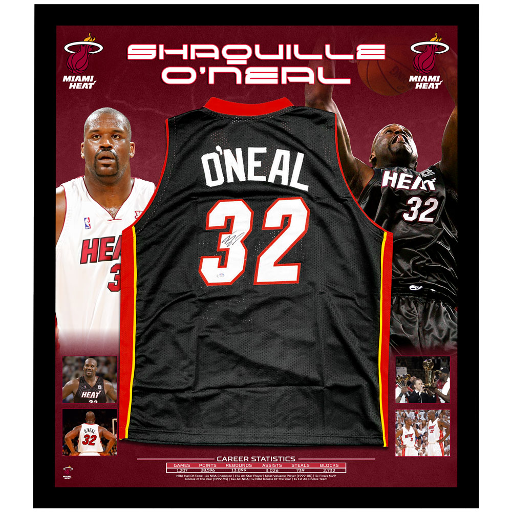 Basketball – Shaquille O’Neal Signed & Framed Black Miami Heat Jersey (PSA COA)