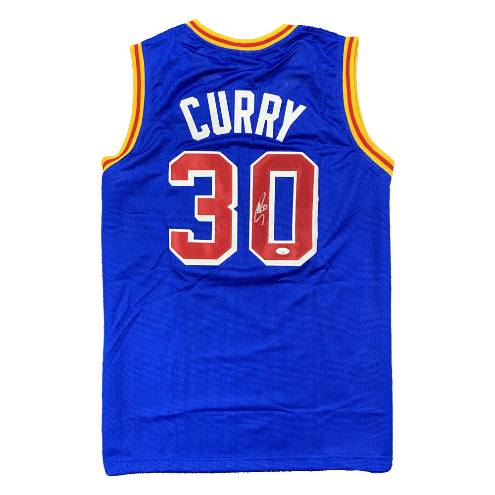 - Custom on-court style Golden State Warriors Blue jersey hand signed by Stephen Curry