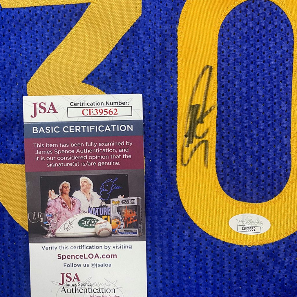 - Custom on-court style Golden State Warriors Blue jersey hand signed by Stephen Curry