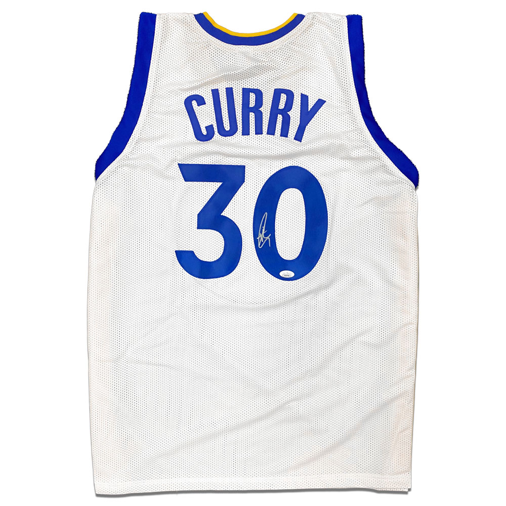 • Custom on-court style Golden State Warriors White jersey hand signed by Stephen Curry