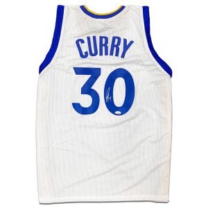 - Custom on-court style Golden State Warriors White jersey hand signed by Stephen Curry