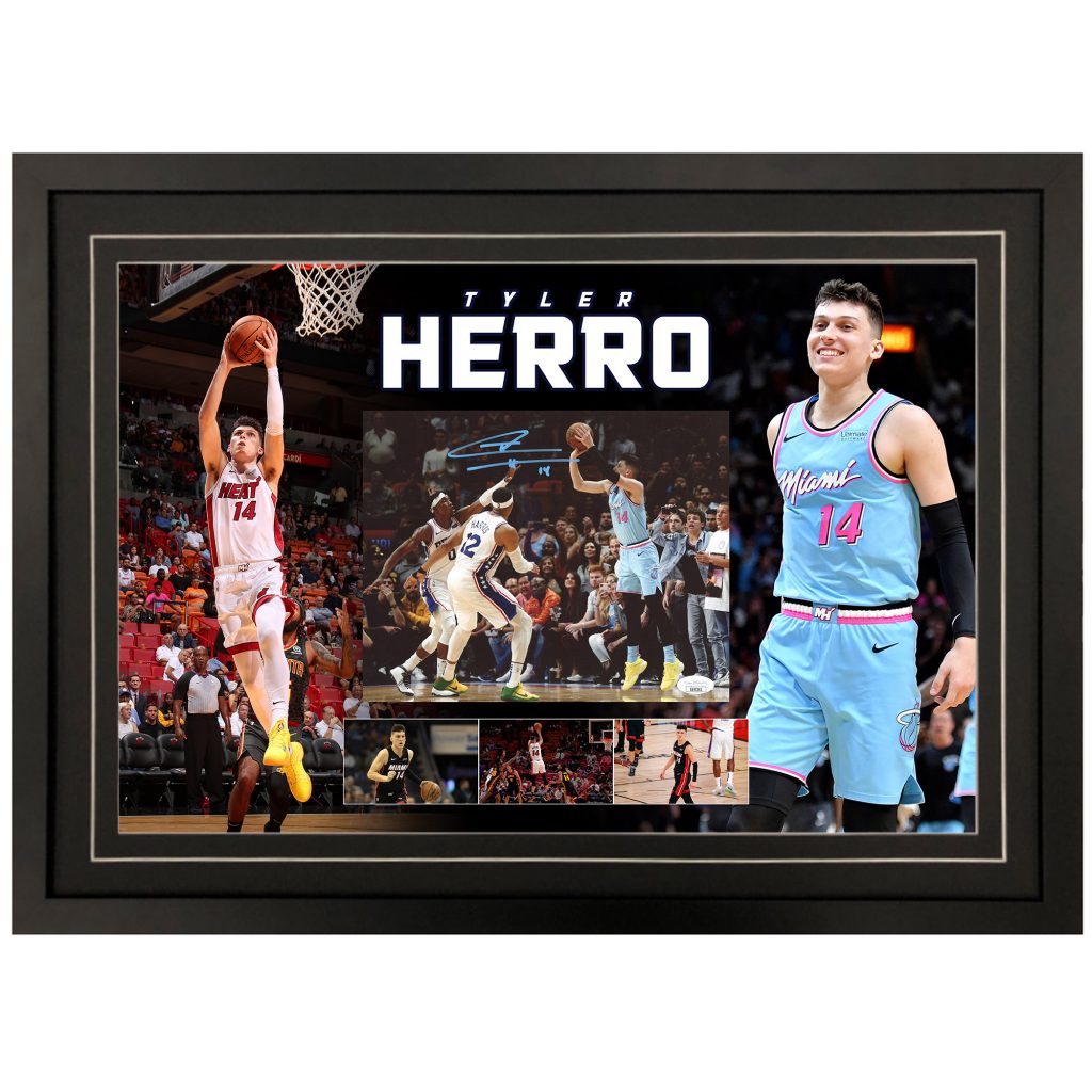 • Signed 8×10 Photograph, personally signed by Tyler Herro, mounted into a deluxe display