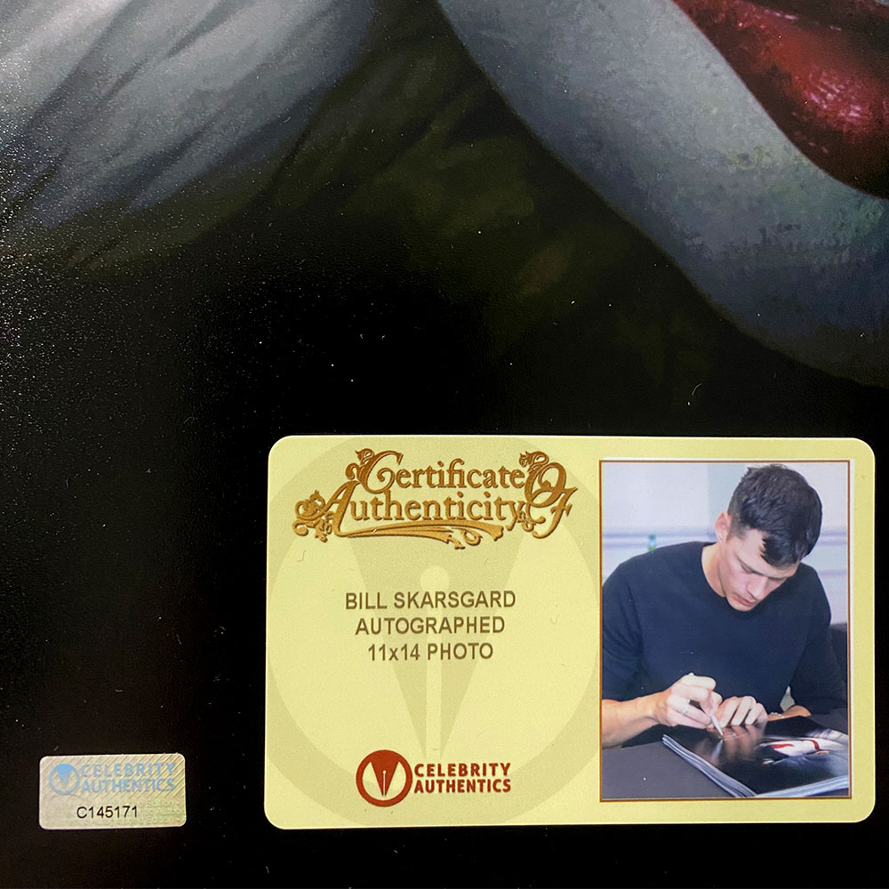 • High quality 11×14 photograph of Pennywise signed by Bill Skarsgard