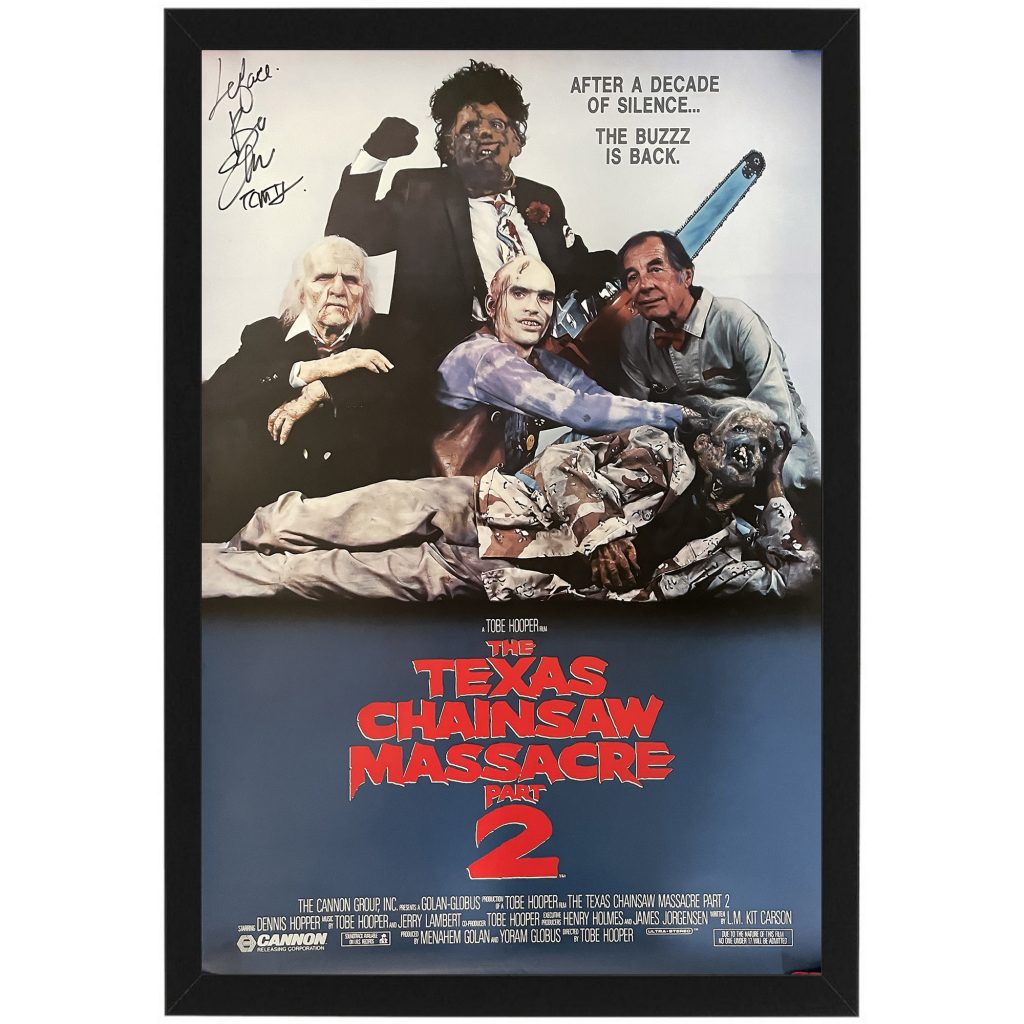 - Texas Chainsaw Massacre 2 full size movie poster hand signed by Bob Elmore (Leatherface)