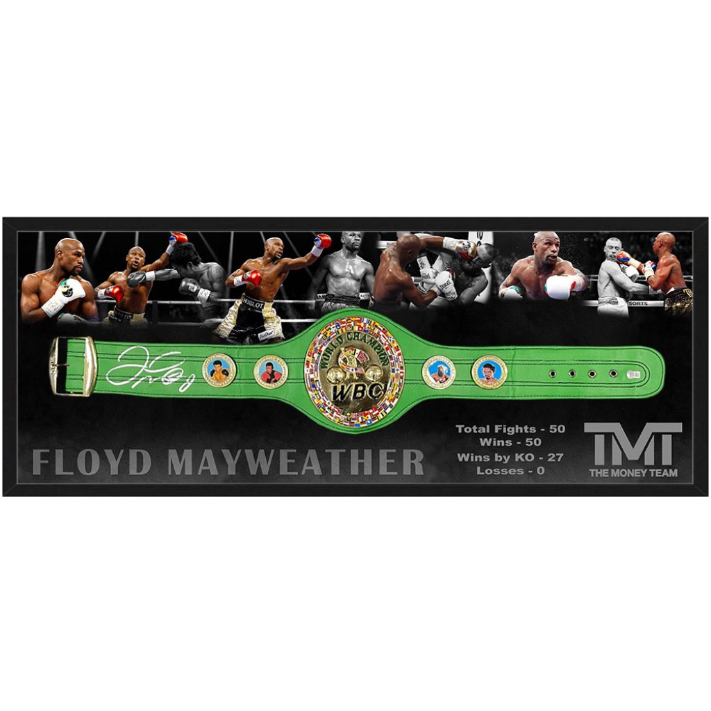 - Features a large deluxe replica WBC championship belt hand signed by Floyd Mayweather Jr.
