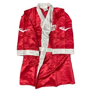 - Blue Everlast boxing robe hand signed by boxing legend “Iron” Mike Tyson