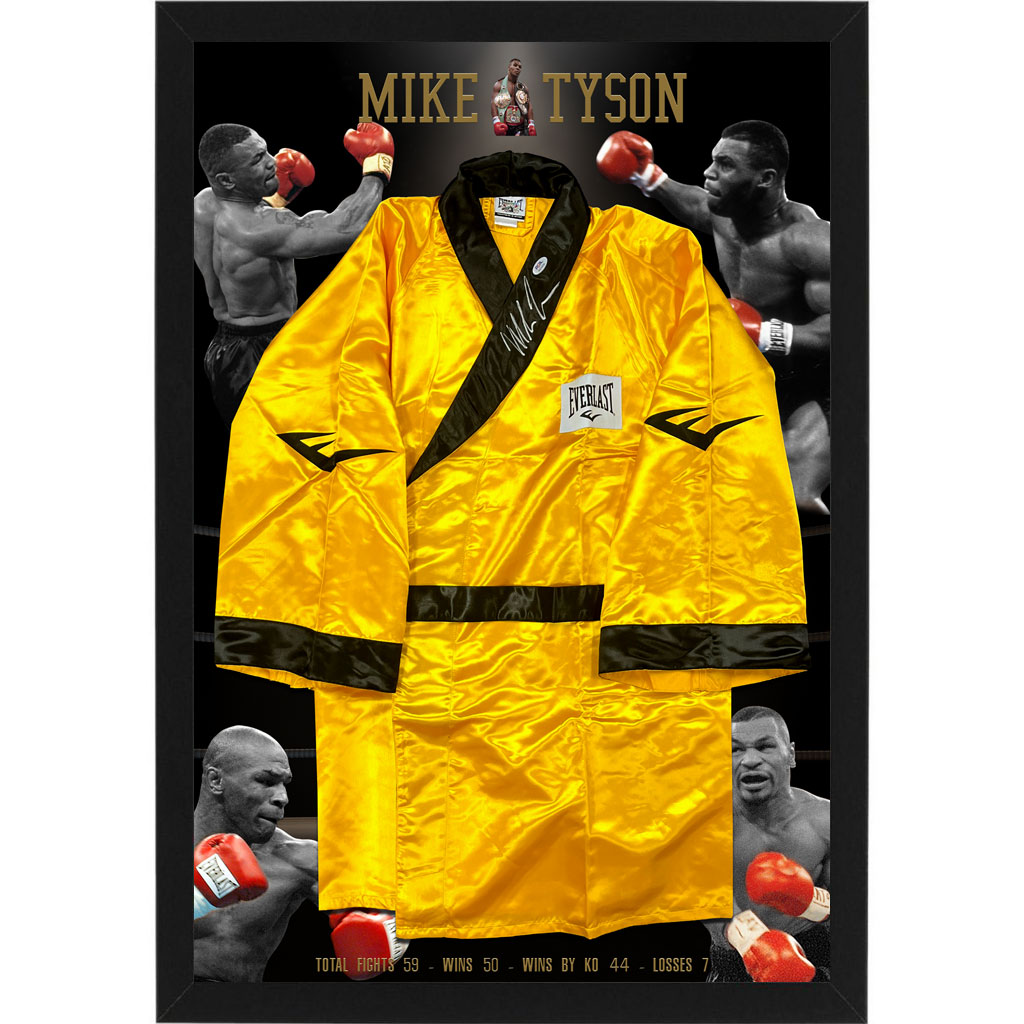 Boxing – Mike Tyson Signed & Framed Yellow Everlast Boxing Robe (PSA + Fiterman)